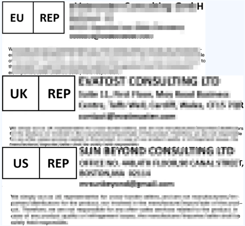 ✔ 欧代/英代/美代信息可印刷在产品的包装、包裹或随附的文件上;